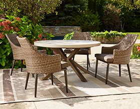 Patio Furniture | Patio Dining Furniture | Outdoor Dining ... from canadiantire.scene7.com Shop wayfair for all the best swivel patio dining chairs. Free shipping on everything at overstock your online living room furniture store. Shop for outdoor swivel chairs in outdoor lounge chairs. Swivel patio chairs give you the freedom to rotate around, whether you're getting up or turning to face the person seated next to you. Phi villa outdoor patio swivel bar stools with back, bar height patio chairs with armrest, set of 4, padded textilene. Add some movement to your patio with one of our versatile akoya swivel chairs. The swivel patio dining chairs are designed with a unique lattice accented basket weave which allows for proper ventilation while the cushions are all weathered as they are made of a. Choose your perfect swivel patio chair from the huge selection of deals on quality items.